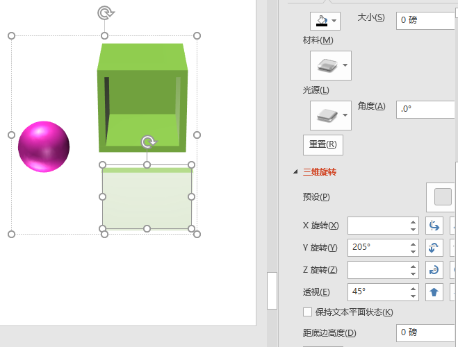 再制作一个长方形盖子,三维旋转给深度20,材质选择半透明-最浅,也可以选择普通材质在填充颜色处给透明度,角度如图所示,再制作一个球体。