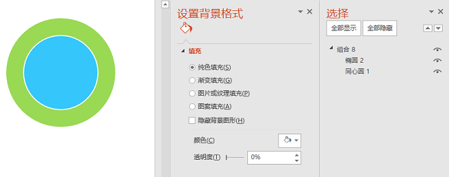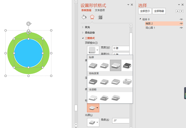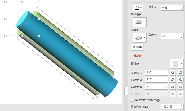 调整三维旋转的角度,选中外圆环,调整距底边高度,即可得到下图。