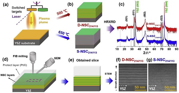 (f)和(g)D-NSC214/113和S-NSC214/113截面的HAADF-STEM图。