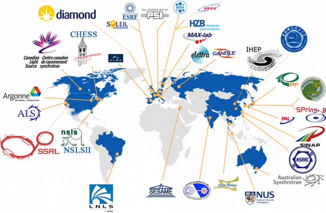 图2 世界上主要的同步辐射装置的分布情况
