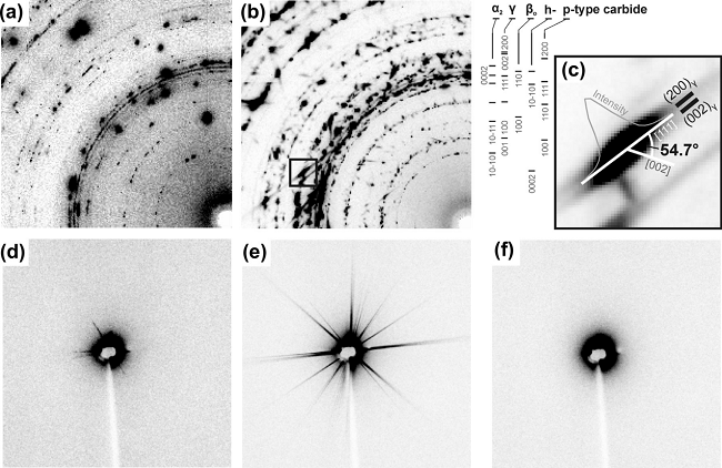Emanuel Schwaighofer等人利用德国汉堡的同步辐射装置DESY,并结合了小角度X射线散射(SAXS)、透射电子显微镜(TEM)和高能X射线衍射(HEXRD)等方法研究了TiAl基合金的沉淀动力学、尺寸演变和热稳定性,图8为部分检测图像。鉴于C合金化可以通过固溶强化和碳化物进一步提高高温性能,他们选用原位X射线散射检测了合金经过等温退火后加热至1200℃的沉淀析出行为和热稳定性,XEXRD研究了析出相在纳米尺度的分层结构,TEM解释了γ-lath的厚度与p型碳化物特征尺寸之间的关系[7]。