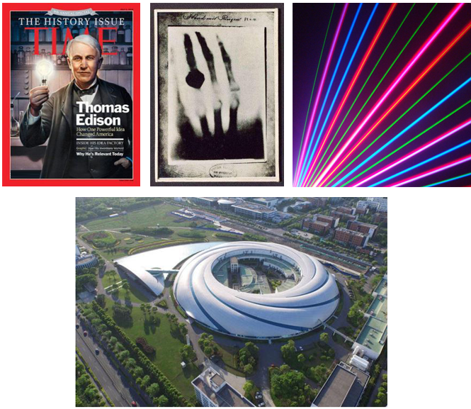 (1)爱迪生和电光源;(2)伦琴和X射线;(3)激光;(4)SSRF