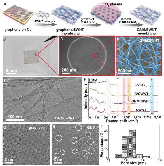文献链接:Large-area graphene-nanomesh/carbon-nanotube hybrid membranes for ionic and molecular nanofiltration(Science, 2019, DOI: 10.1126/science.aau5321)