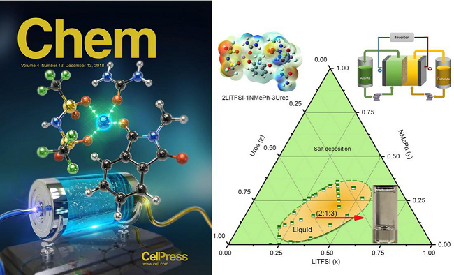 1.Eutectic Electrolytes for High-Energy-Density Redox Flow Batteries, ACS Energy Letters, 3, 2875 (2018), DOI: 10.1021/acsenergylett.8b01899.