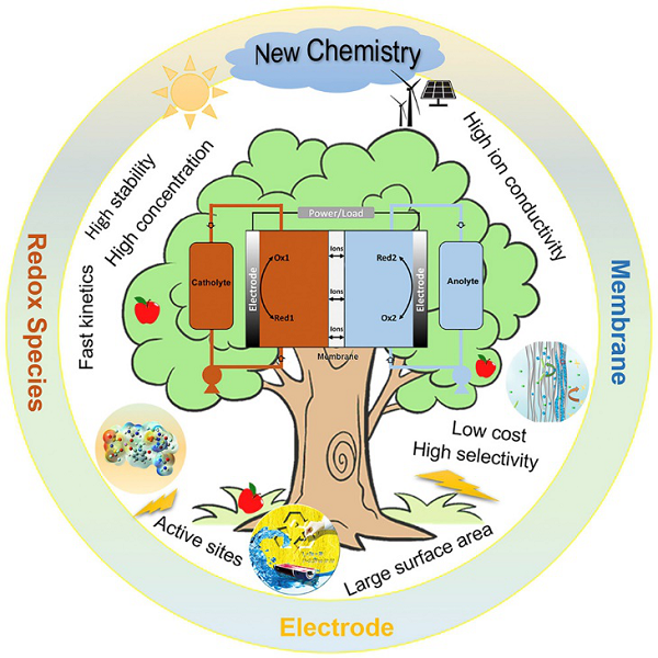 本文系统阐述了目前基于新化学设计的液流电池发展趋势,包括高浓度活性物质设计、碱金属负极的应用以及光充电概念等。通过分析不同新型液流电池的构造,分别提出了对活性物质物理化学性质的要求和讨论了可能面临的问题和挑战。