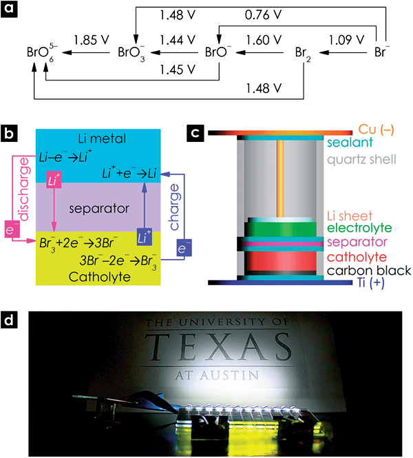 2.Reversible Br2/Br−Redox Couple in Aqueous Phase as High-performance Catholyte for Alkali-Ion Batteries, Energy & Environ. Science, 7, 1990 (2014), DOI: 10.1039/C4EE00407H.
