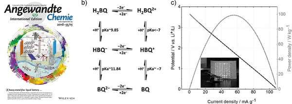 2.A Bio-Inspired, Heavy-Metal-Free, Dual-Electrolyte Liquid Battery towards Sustainable Energy Storage, Angew. Chem. Int. Ed., 55, 4772 (2016), DOI: 10.1002/anie.201600705.