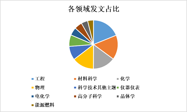 笔者在Web of Science中,输入“self-supported”或“free-standing”作为主题,检索2009-2019年区间此类主题的发文数量(含文献和专利等)和分布情况。总共检索到15203条记录。近十年来,此类主题的总体发文数量呈现逐年递增的趋势(2019年数据统计至6月份),见图1。其中,在15203条记录中,又以文献和专利占绝大多数。各领域发文数量统计结果表明,工程、材料科学、化学和物理等领域占比大(图3)。自支撑电极广泛应用在锂离子电池、超级电容器、锂空电池、电催化析氢等诸多领域。