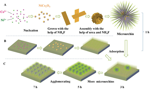 图6. 制备NiCo2O4 HNAs/NF示意图。