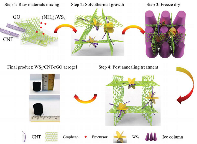 图10. 制备WS2/CNT-rGO溶胶纳米结构的过程示意图。