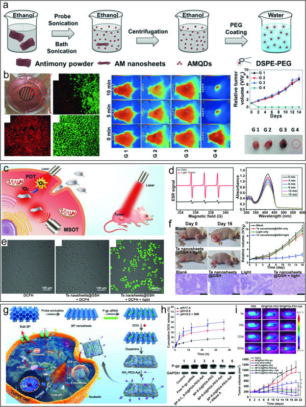 图七: 基于新兴Xenes的药物载体(递送小分子药物、siRNA等)设计和光学治疗(光热治疗、光动力治疗等)应用。