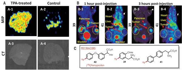 图3 通过芳烃C-H放射性氟化合成的PET示踪剂