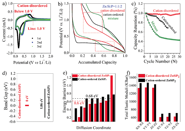 图2. 阳离子无序和有序ZnSiP2样品的储锂性能。