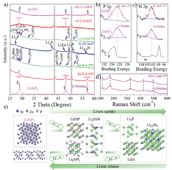 图3. 阳离子无序ZnSiP2储锂机制表征。
