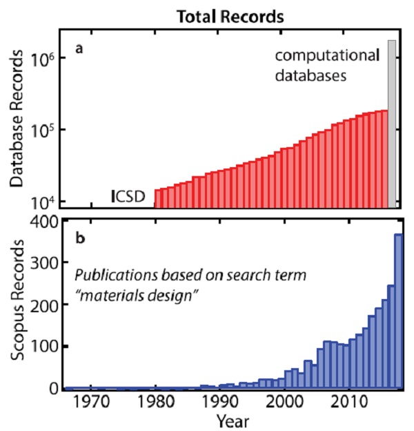 (a).无机晶体结构数据库(ICSD)和计算数据库中包含的化合物总数