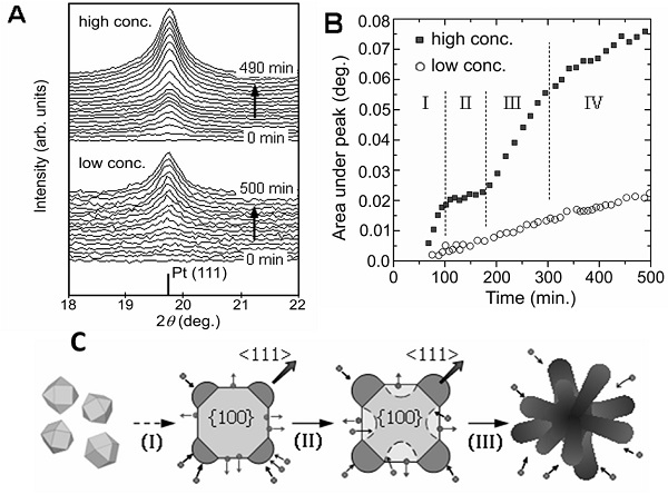Figure 10.在低浓度和高浓度的稳定剂下原位合成Pt纳米结构