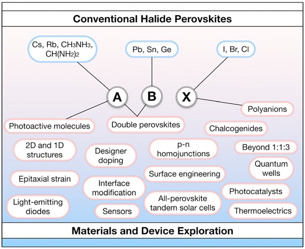 Figure 19.卤素钙钛矿材料和器件的创新空间示意图