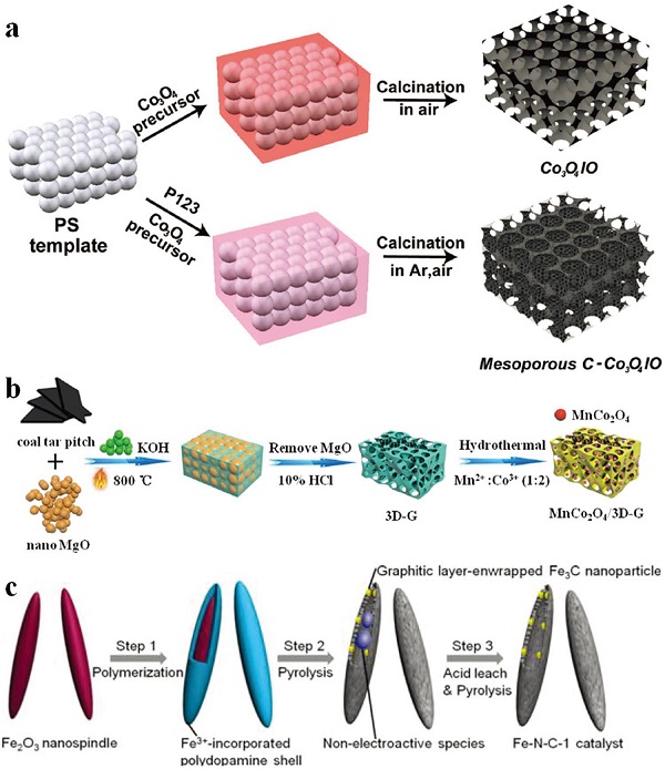 图二、自模板法制备TM修饰多孔碳纳米结构举例