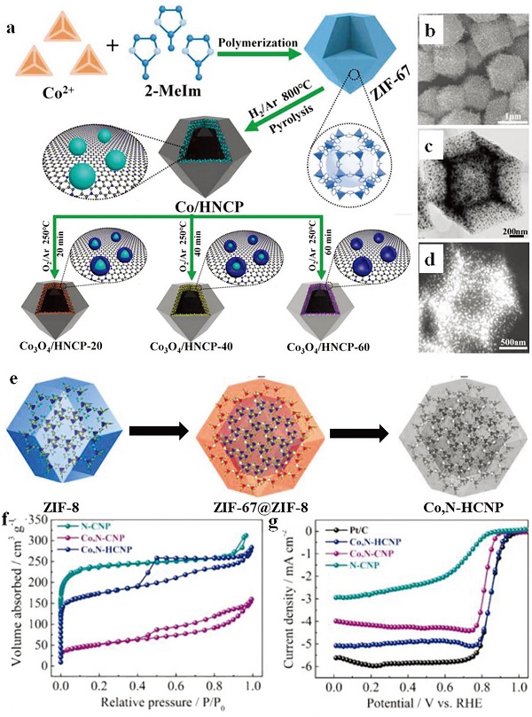 (a)一系列基于Co-Co3O4纳米结构的空心氮掺杂碳多面体制备示意图;