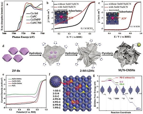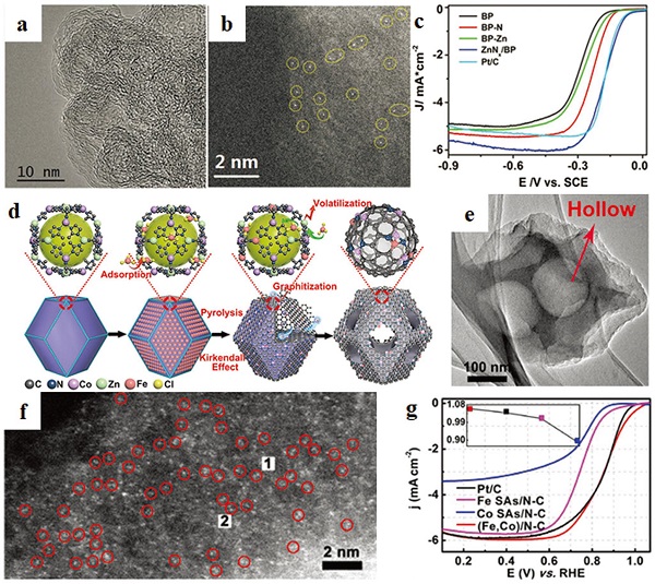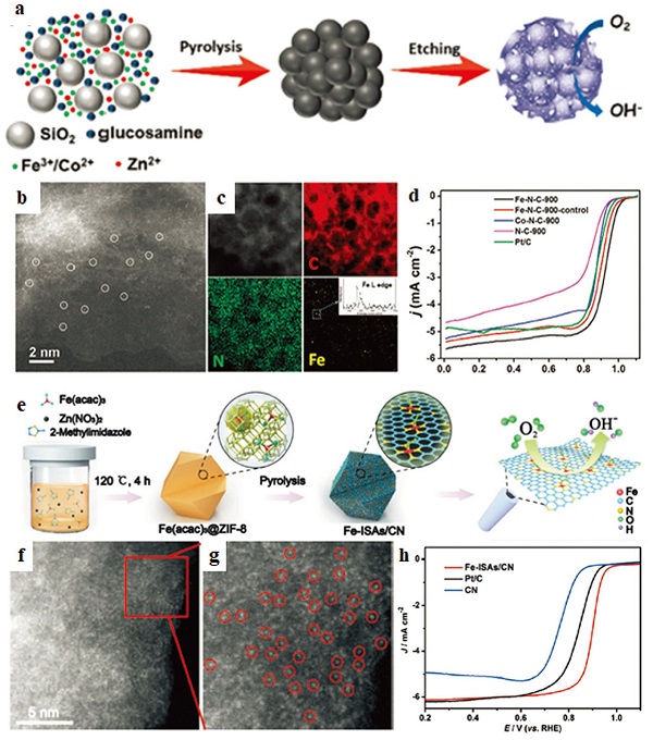 (a)多孔M-N-C(M = Co和Fe)电催化剂的构建示意图;