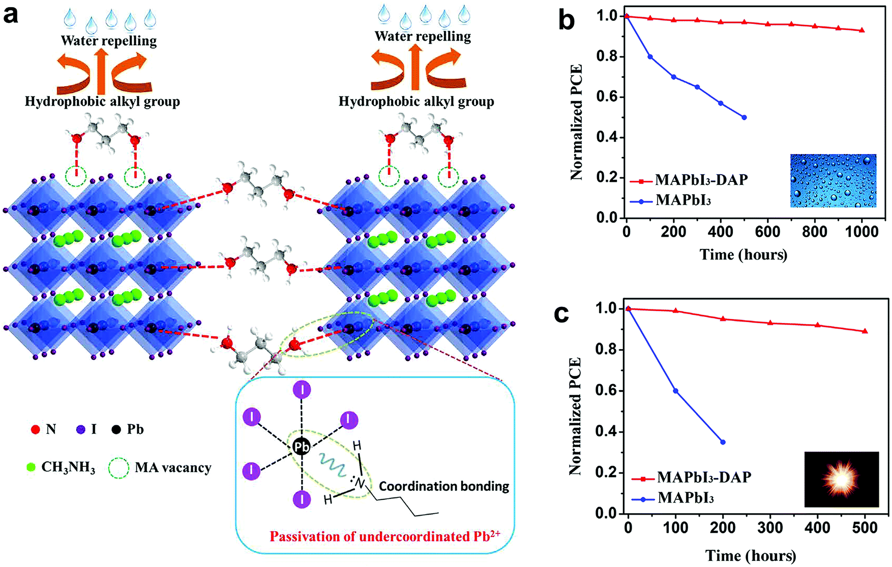 (a) 双侧引入烷基胺引起缺陷钝化并阻挡水分子入侵;