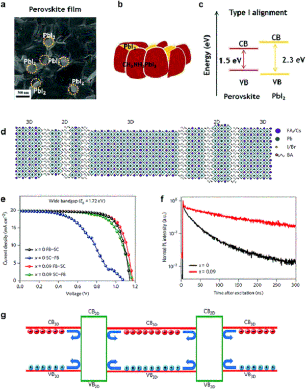 图七 扩展缺陷钝化与三维到层状钙钛矿转化