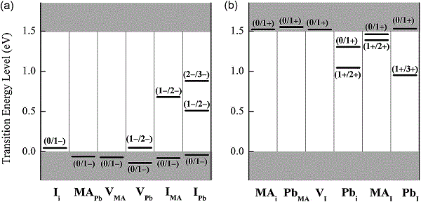 图八 MAPbI3中本征受主和本征施主的跃迁能级