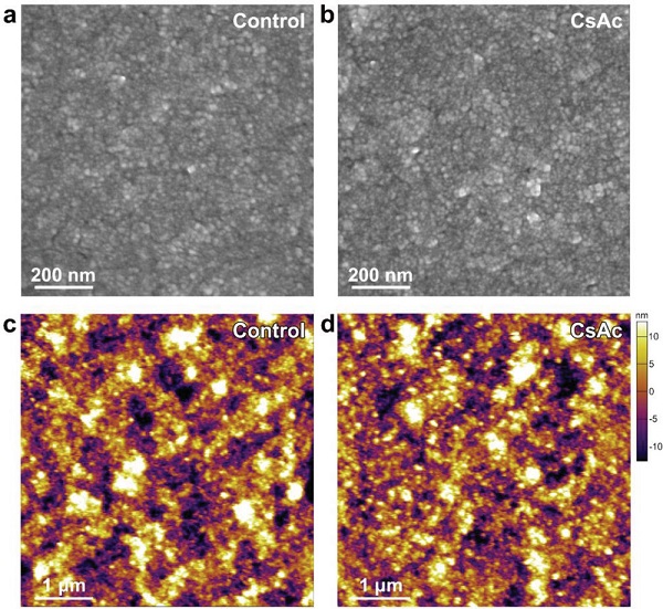 图三、有无CsAc处理,对CsPbI3 量子点薄膜性能的影响