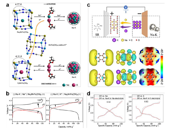 (a)在和MnFe(CN)6基的阴极材料一同工作时,Na-K液态合金阳极表现为钾阳极;