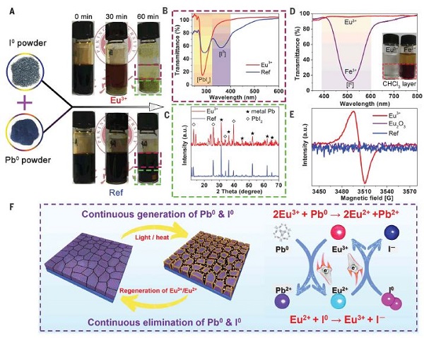Eu3+-Eu2+离子对在溶液态和薄膜态增加Pb0和I0到Pb2+和I–的转化率