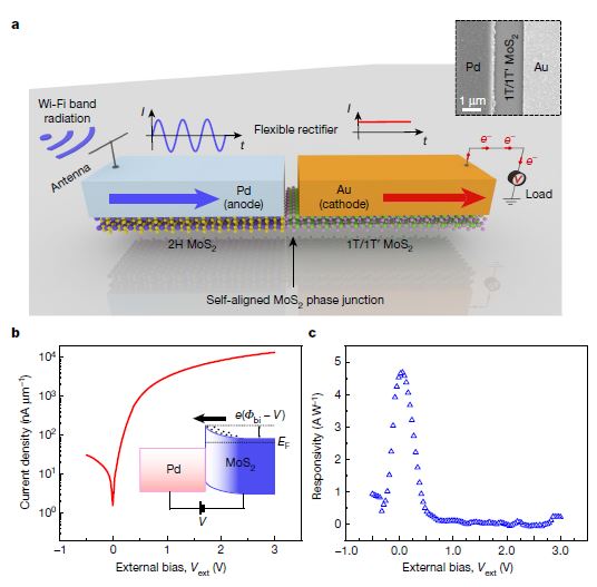 文献链接:Two-dimensional MoS2-enabled flexible rectenna for Wi-Fi-band wireless energy harvesting(Nature, 2019, DOI: 10.1038/s41586-019-0892-1)