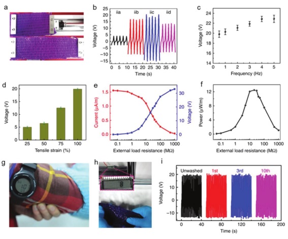 b-f) 纺织器件的输出性能;