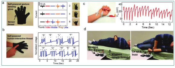b) 一个自供电的人机交互界面;