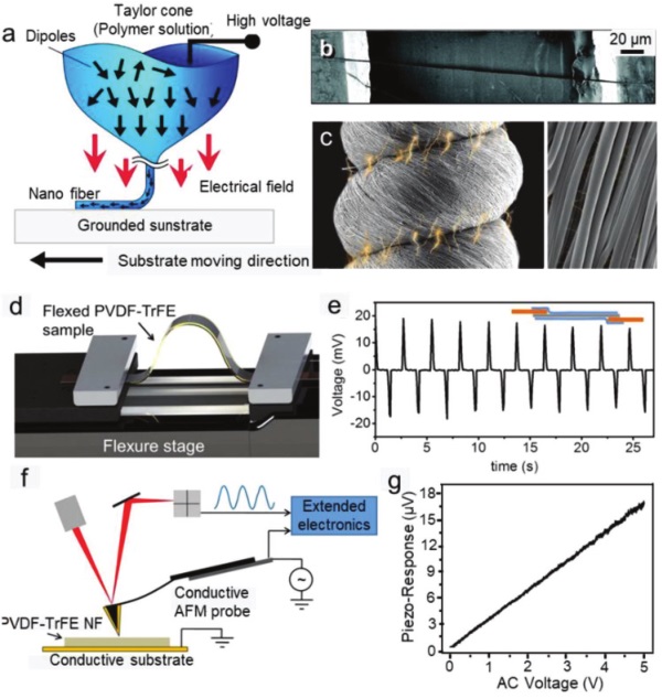 g) PVDF-TrFE纳米纤维的压电响应性能。