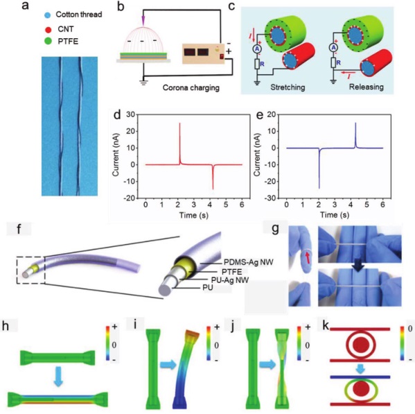 图7 纤维状摩擦发电纳米发电机(FTENGs)