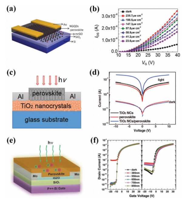 Figure 11.基于有机–无机钙钛矿与其他材料结合的器件的示意图和性能表征