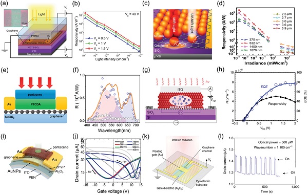 (k)具有热电效应的Gr杂化光电晶体管的示意图;