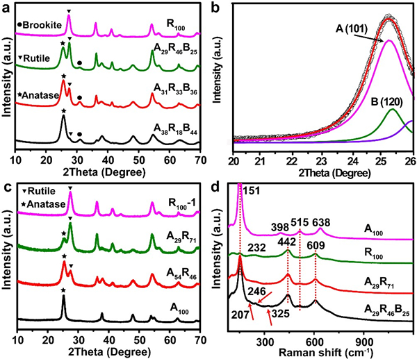 图 3:介孔TiO2多质异形体的晶体结构表征。(来源Advanced Energy Materials)