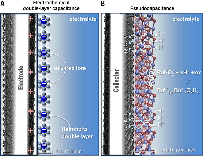 Fig 1 双电层与赝电容工作机制