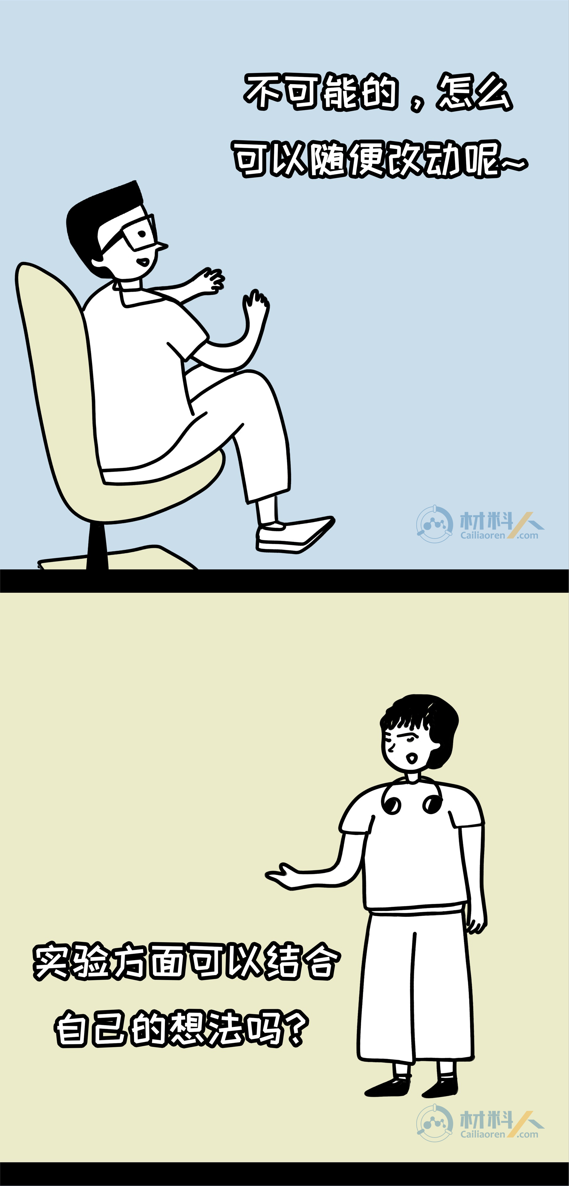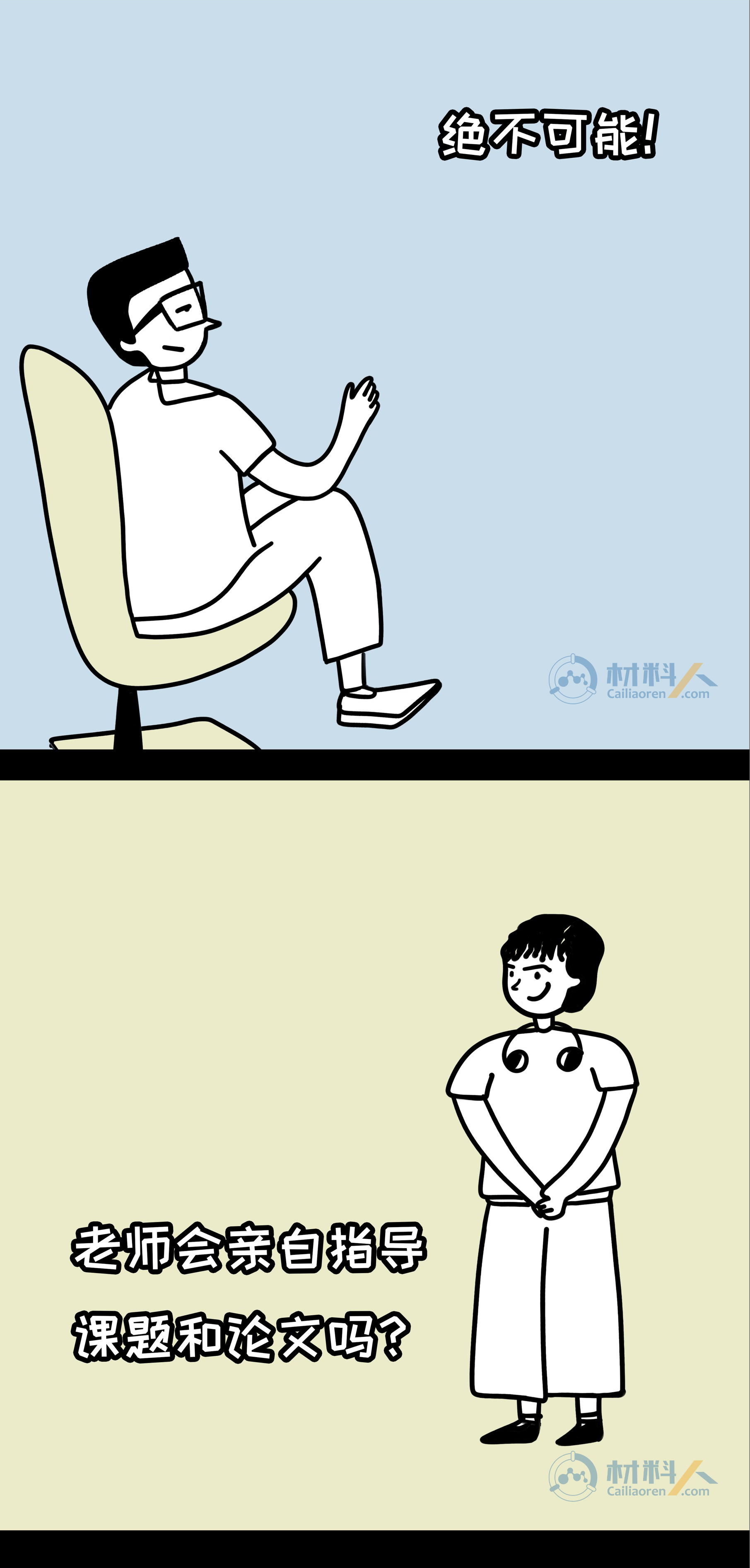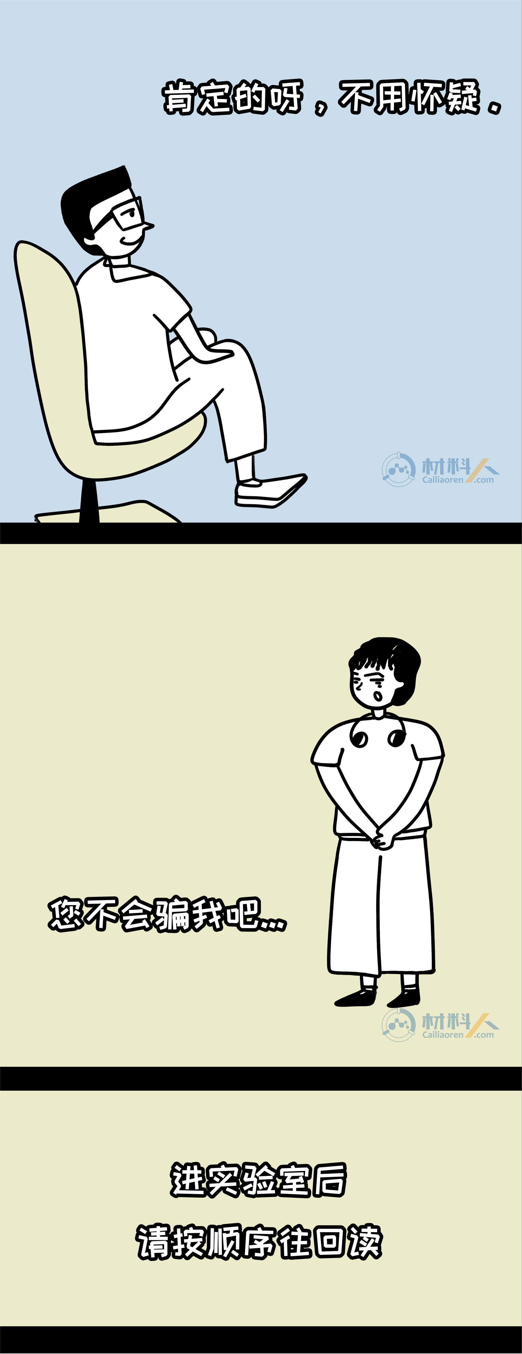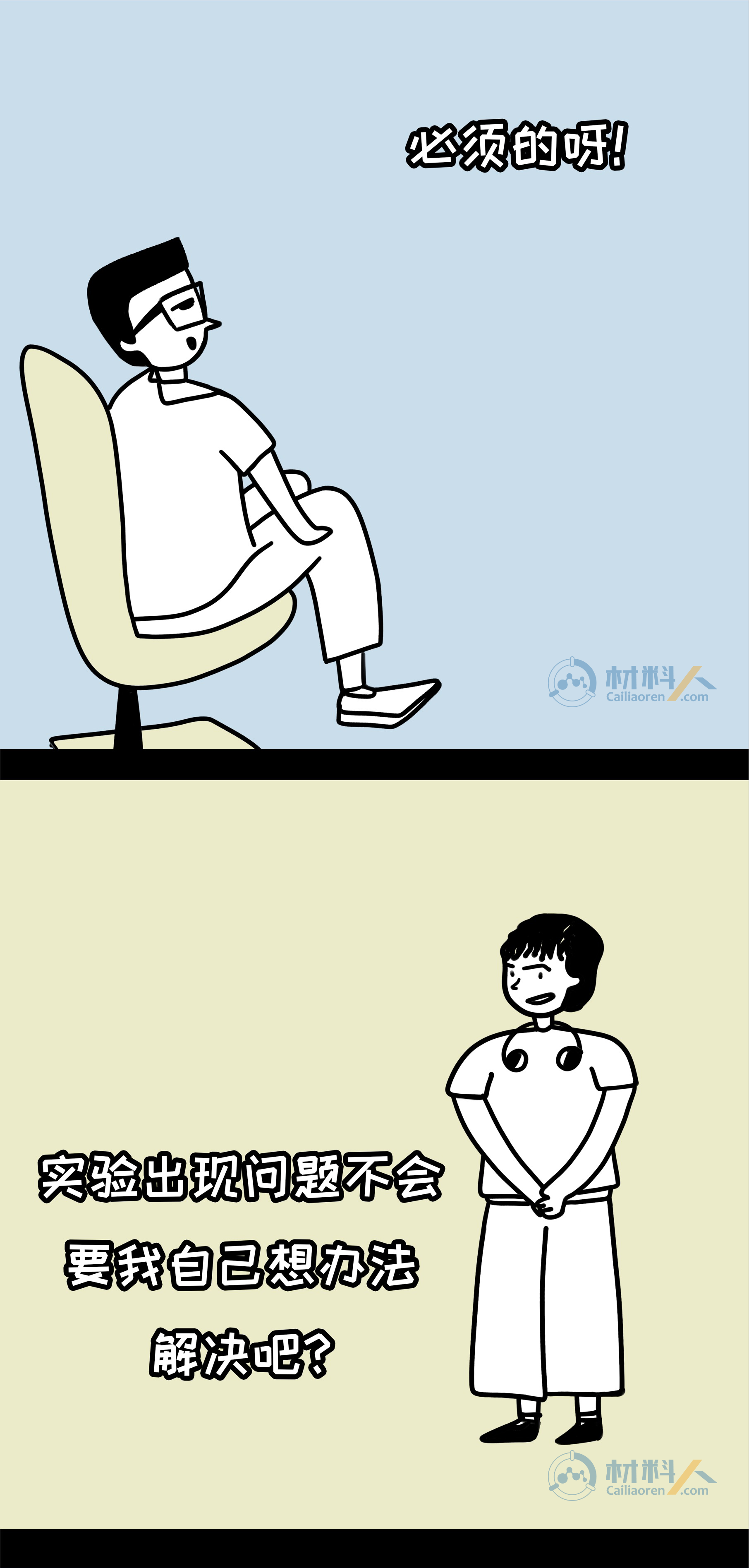 科研生活的理想与现实—读博前VS读博后youyoucao2019-07-27观点8.9K敢问哪位科研萌新在走进实验室前没有幻想过这样的生活:导师博学负责、同学团结友爱、实验一帆风顺,手握N篇SCI,毕业直接走上人生巅峰?敢问哪位导师没有向学生描绘过这样的前景:工作环境优越、实验设备高端、手握大把项目、优质论文批量产出? 然而现实…… 注:漫画内容纯属虚构,如有雷同,纯属巧合。 理想很丰满,现实却很骨感,但还是希望每个人都有一个精彩的科研生涯,一起加油吧! 本文漫画作者为藩鼠,由材料人编辑,文章灵感来源于网络。 未经允许不得转载:材料牛 » 科研生活的理想与现实—读博前VS读博后