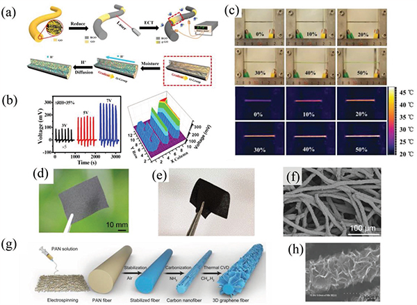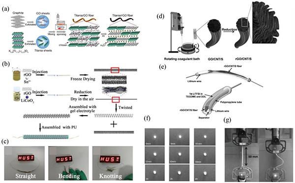 便携式和可穿戴电子产品的出现、持续发展及其在健康护理、无线通信、移动电视等新应用极大地提升了人们的生活。在这些设备中,基于纤维的设备由于其柔软性、高强度、多功能性以及易于与现代纺织工业结合而展现出较高需求。目前,金属线、碳纤维和碳纳米管等材料已经成功地用作基底来制备纤维性设备,但是金属较重和碳纤维/碳纳米管价格偏高等缺点限制了其在柔性可穿戴电子产品中的大规模应用。石墨烯及其衍生物(包括氧化石墨烯(GO)和还原氧化来石墨烯(RGO)),近年已被广泛研究用于制备石墨烯基纤维(GBF)。这些微观2D石墨烯构筑基元的宏观1D自组体具有重量轻、高比表面积和优异的机械、电学性能,使其成为纤维电子设备的理想材料。