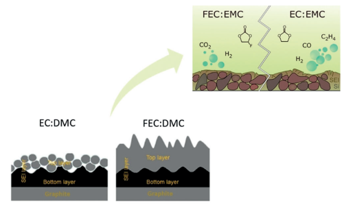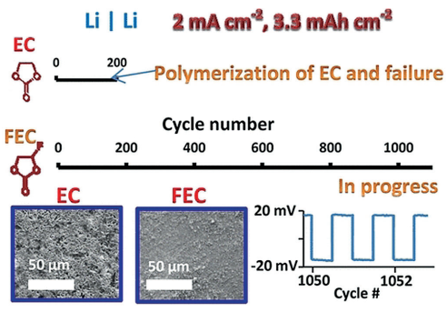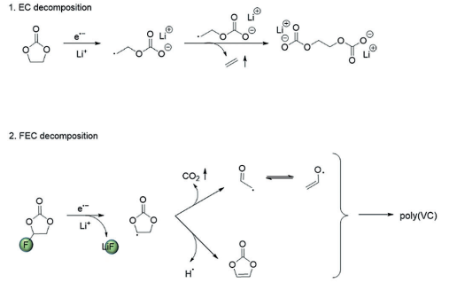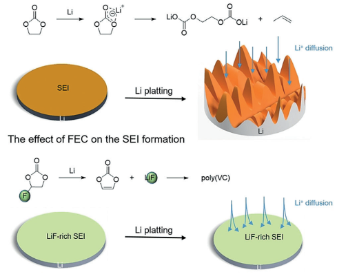 图二十三、EC和FEC的分解机理及其对锂金属阳极上SEI形成和阳极表面附近锂扩散的影响