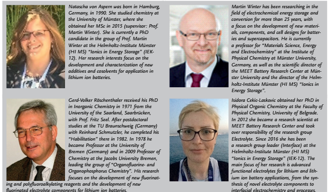 近日,德国余利希研究所(Forschungszentrum Julich GmbH)的N. von Aspern(第一作者)在M. Winter和I. Cekic-Laskovic教授(共同通讯作者)的指导下,在国际顶级期刊Angew. Chem. Int. Ed.上发表了综述文章:Fluorine and Lithium: Ideal Partners for High-Performance Rechargeable Battery Electrolytes。本综述旨在系统地涵盖关键的研究和技术发展,以便在锂离子电池(LIB)中的电解质组分(导电盐、溶剂和功能添加剂)组成的液体电解质中广泛应用氟基材料,例如(SOTA)可充电储能系统、可能的未来锂金属电池(LMB)、双离子电池(DIB)以及相关的持续科学挑战。通过结合不同的上述内容的优点,可以针对特定的目标应用优化和定制电解质。本文重点将放在与电池的高质量操作相关的物理化学、电化学和安全方面。考虑到这一点,将严格审查和讨论性能特征、当前限制和最近的突破。此外,本次审查的目的是为有竞争力的制造业中锂基电池的长寿命、高能量密度、高功率和足够安全性的氟基材料的进一步和未来发展提供观点和可能的策略。