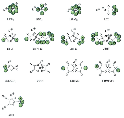 进一步提高可充电锂电池的能量密度需要全新的电池化学成分、与合适的电解质兼容的先进电极材料并且同时保证不影响整体性能和安全性(尤其是在考虑高压应用时)。通过将氟引入盐、溶剂/共溶剂或功能添加剂结构中,可以成功地实现基于传统有机碳酸酯基电解质的电池化学的显着进步。来自不同成分的益处的组合使得能够针对特定的,有针对性的应用优化电解质和电池化学。本综述旨在突出应用于质子惰性的非水溶剂型电解质的氟基材料的关键研究和技术发展,以及相关的持续科学挑战和局限性。本综述不考虑含氟离子液体电解质。