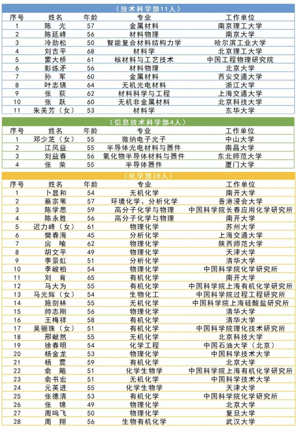 快讯!43位材料、化学科学家进入2019年中科院院士初步候选名单!Alisa2019-08-02业界5.01K日前,2019年中国科学院院士增选通信评审工作已经结束,将初步候选人名单于昨日予以公布。 材料人小编对其中材料和化学类专业相关候选人名单进行整理如下: 主要数据来源中国科学院官网。 http://www.most.gov.cn/mostinfo/xinxifenlei/gjkjjl/gjkjjltjps/201907/t20190712_147681.htm 材料人编辑整理。 未经允许不得转载:材料牛 » 快讯!43位材料、化学科学家进入2019年中科院院士初步候选名单!