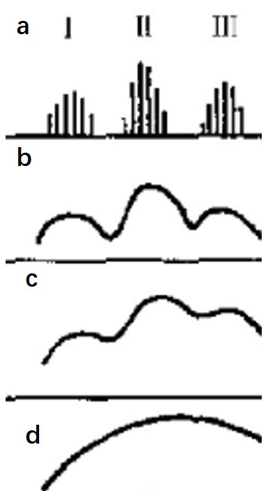 当浓度增大时,转动能级受限制,则形成连续曲线,如图1b;在低极性溶剂中测定紫外吸收,还能保留一些紫外吸收的精细结构如图1c;在高极性溶剂中作图,精细结构则完全消失,如图1d。