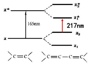 图2. 乙烯和共轭丁二烯的π→π*跃迁