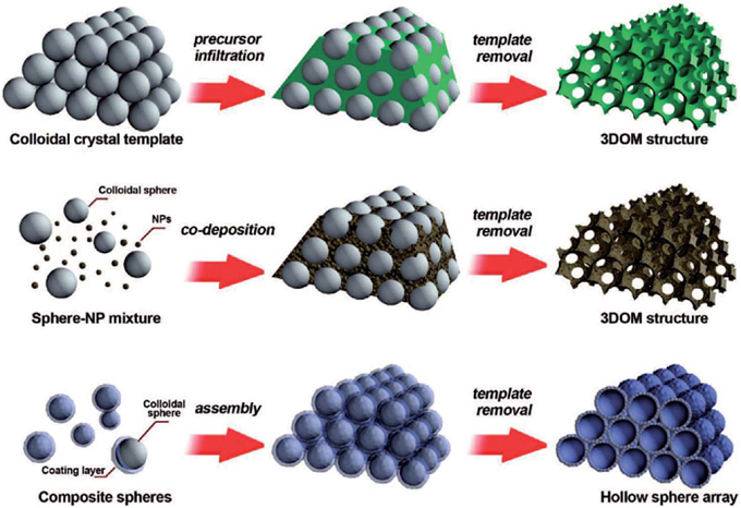 图2、使用胶体晶体作为牺牲型硬模板制备不同多孔材料[2]。