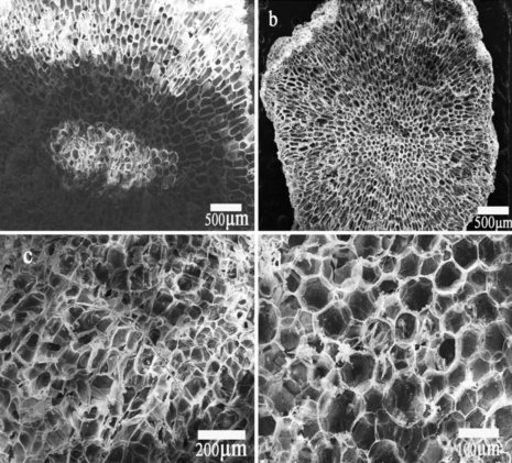 图3、植物髓和大孔支架的断面扫描图[3]。