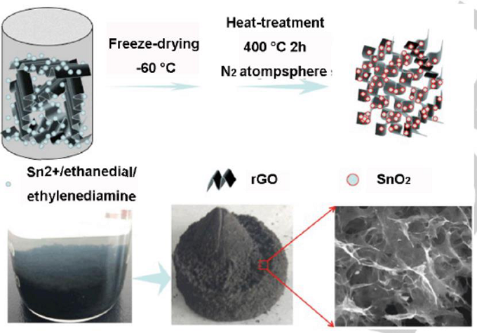 图7、制备SnO2/rGO干凝胶的过程示意图[7]。